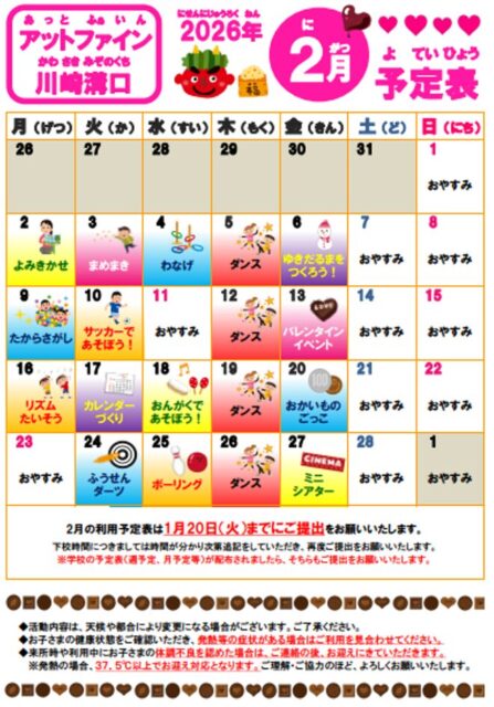【川崎溝口】2月のレクカレンダー📅
