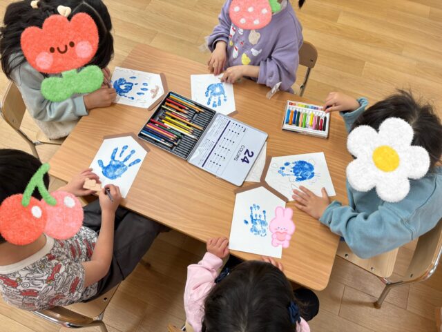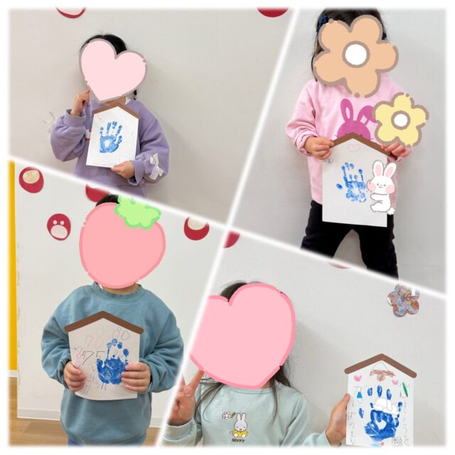 年齢の小さいお子さまは、職員が顔のパーツの名前を言いながら渡すと、「目!口!!」と復唱したり、自分の顔にある目を触ったりしていて、身体部位の覚える練習になったかなと思います👀