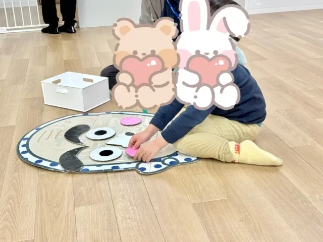 目隠しをしたお子さまは、手探りでパーツの向きを判断して上手にお顔が作れていました!順番を守ることもばっちりです✨