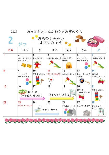 遅くなってしまいましたが、2月のお楽しみ会の予定です📅